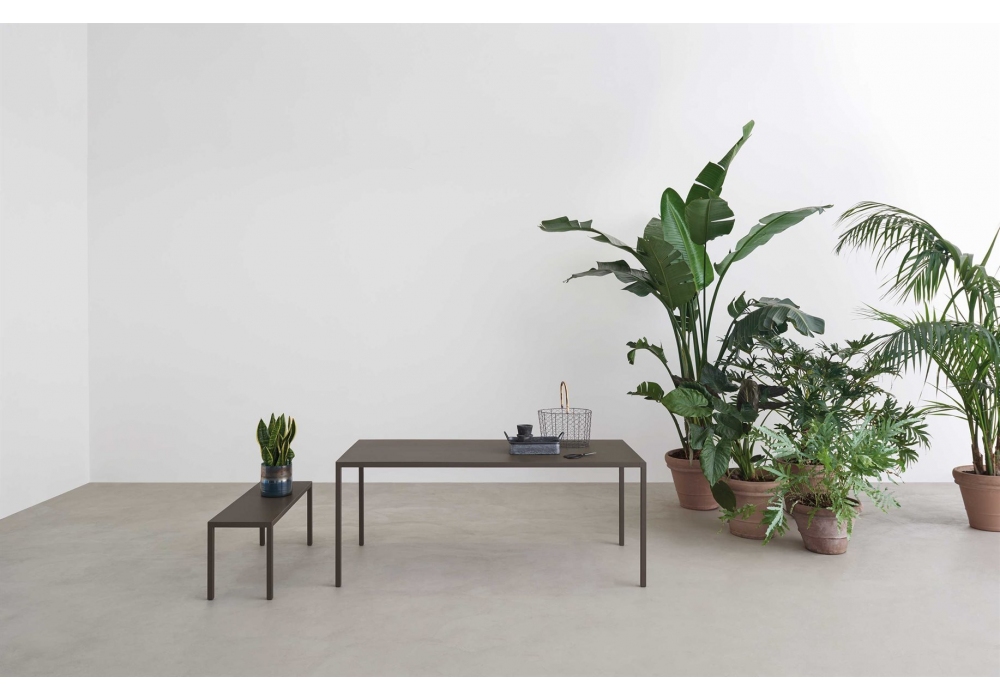 Helsinki 597 diseñado por Caronni y Bonanomi para Desalto es un banco con estructura de acero y juntas de fundición a presión, tapa del asiento en laminado (10 mm). Disponible en diferentes acabados, medidas y en versión interior o exterior.
