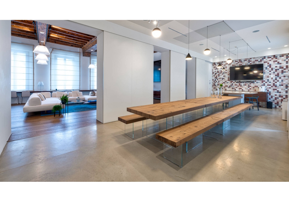 Air Wildwood diseñado por Daniele Lago para Lago es un banco realizado con patas de cristal extraclaro o gris ahumado y tablero Wildwood. Disponible en diferentes acabados y dimensiones.
