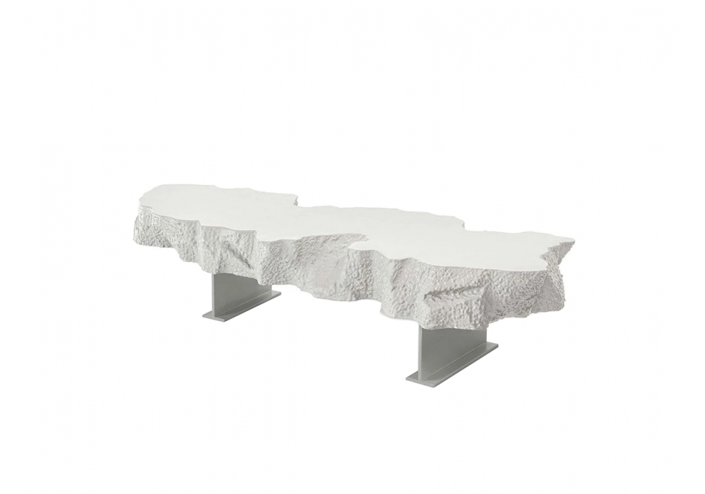 Broken Bench Almost White diseñado por Snarkitecture para Gufram es un banco con asiento acolchado en espuma de poliuretano acabado totalmente a mano con pintura especial patentada por Gufram, Guflac®. Las vigas de soporte están fabricadas en aglomerado plástico de alta resistencia.
