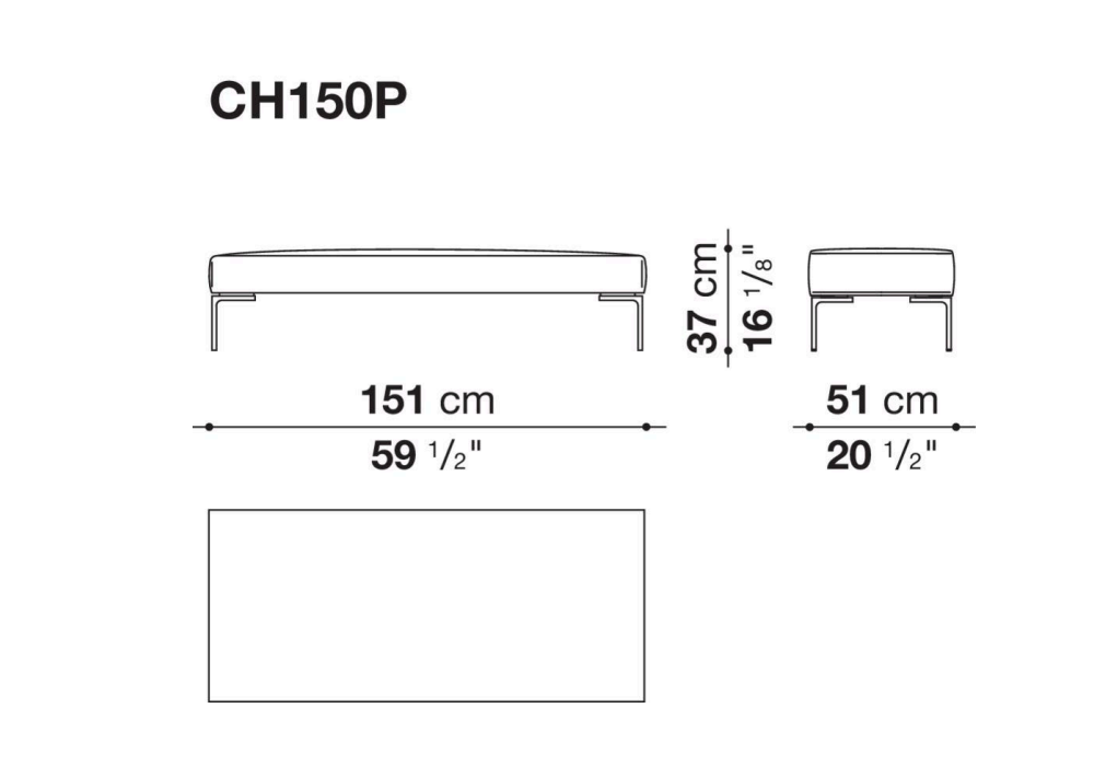 Charles diseñado por Antonio Citterio para B&B Italia es un banco con patas de aluminio cepillado, pulido o pintado. El acolchado es de poliuretano moldeado de densidad diferenciada, pluma esterilizada, forro de fibra de poliéster con revestimiento de piel o tela.