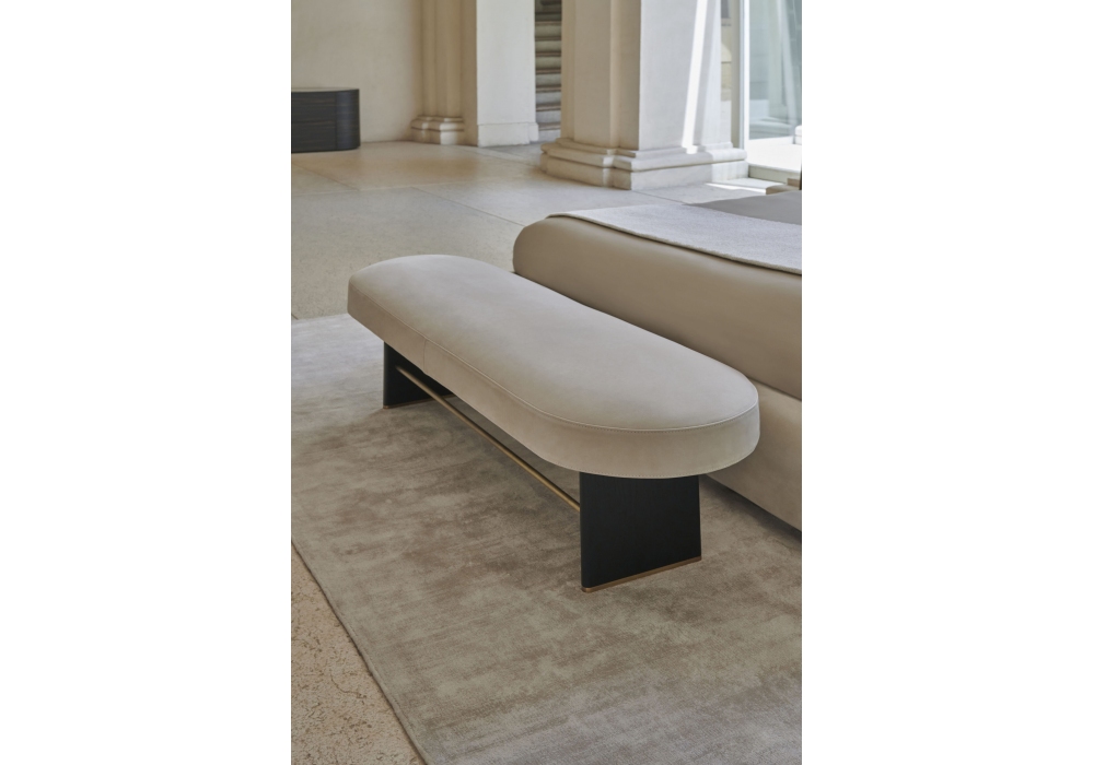Vincent diseñado por Dainelli Studio para Conte Casa es un banco realizado con tapizado de tela o piel, estructura de madera y detalle de metal.