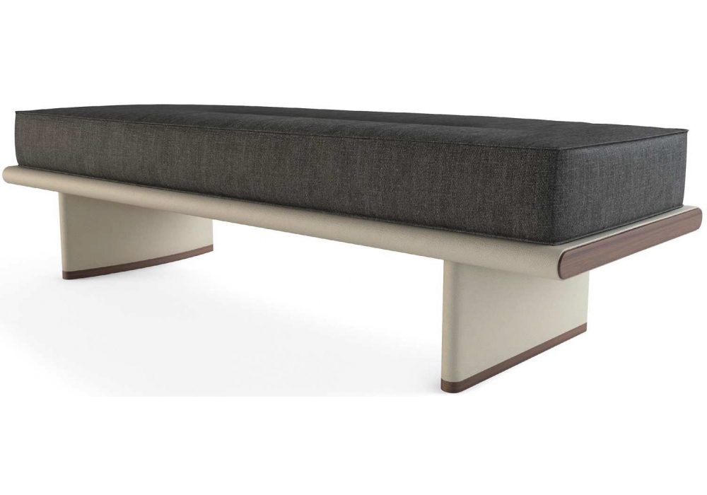 Notting Hill diseñado por Mauro Lipparini para Conte Casa es un banco realizado con estructura revestida en piel y detalles en madera. Asiento acolchado con tapizado en tela o piel. Disponible en diferentes acabados.