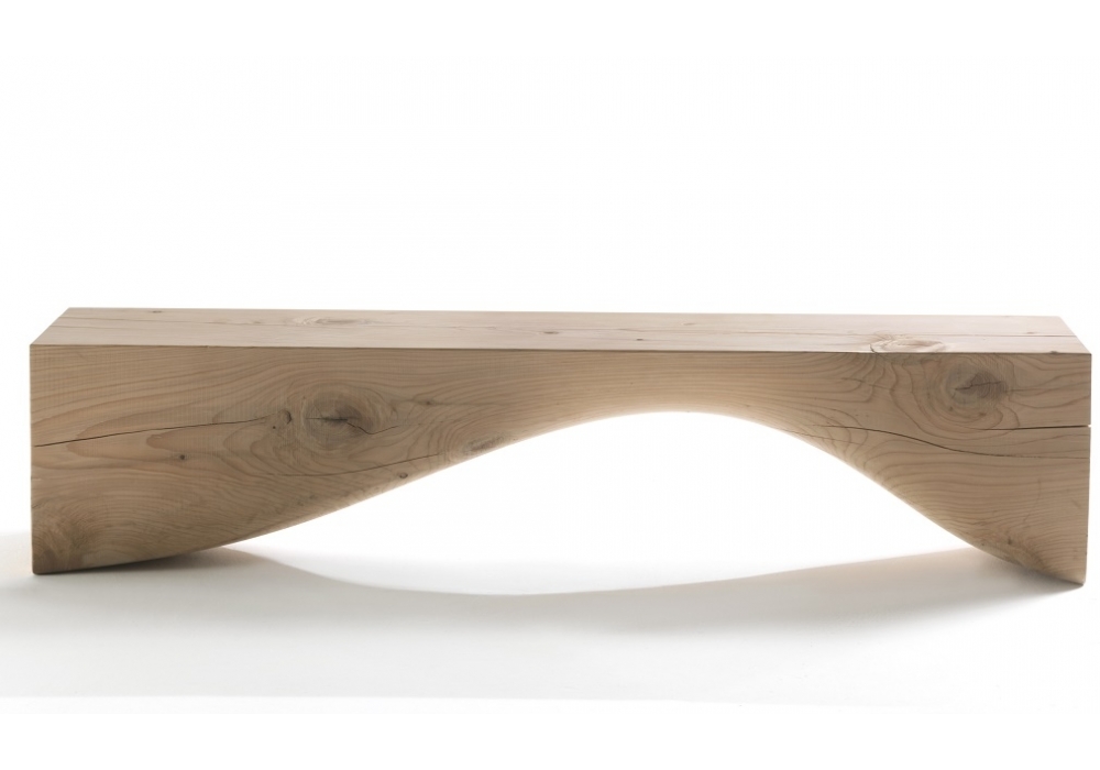 Curve Bench diseñado por Brodie Neill para Riva 1920 es un banco en cedro perfumado macizo trabajado a partir de un solo bloque, caracterizado por la forma arqueada debajo de la superficie del asiento que realza las vetas y los tonos del cedro natural. Disponible en diferentes acabados.