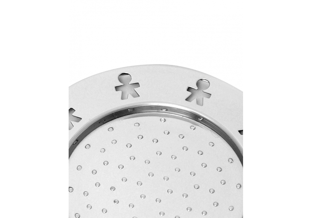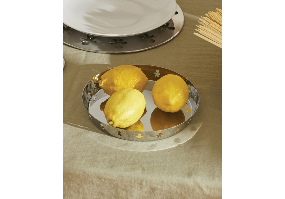 Mini Girotondo diseñada por King-Kong para Alessi es una bandeja redonda calada realizada en acero inoxidable 18/10.