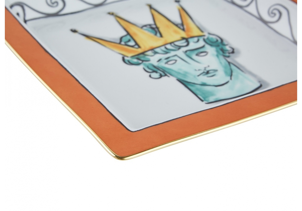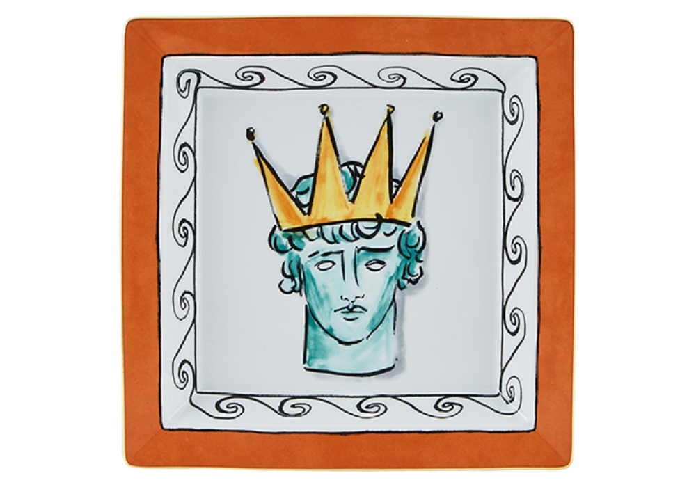 Piatto Svuotatasche Quadrato Grande Il Viaggio di Nettuno Rock Orange diseñada por Luke Edward Hall para Ginori 1735 es una bandeja vacía bolsillos decorada.