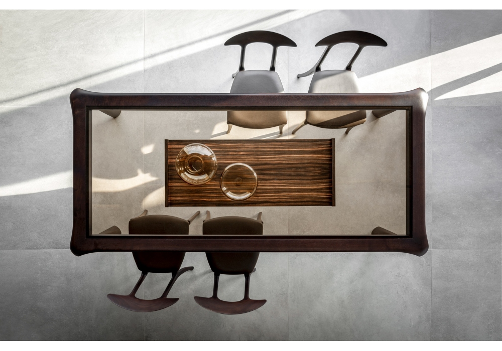 Quartabuono diseñada por el estudio de diseño Ceccotti Collezioni es una bandeja de servicio en madera contrachapada disponible en: ébano o palo de rosa.