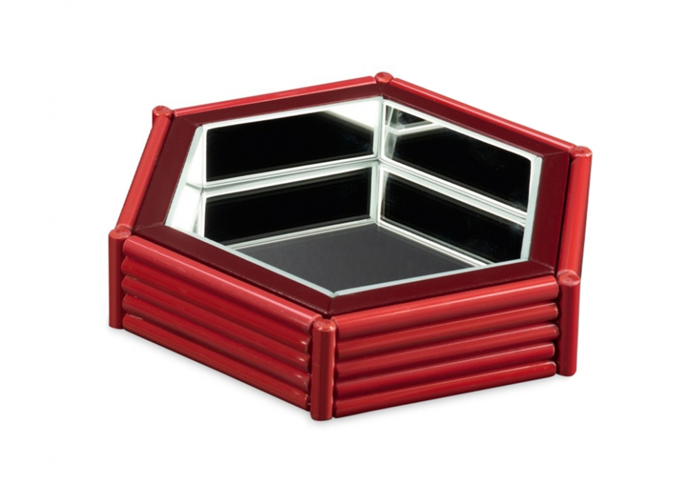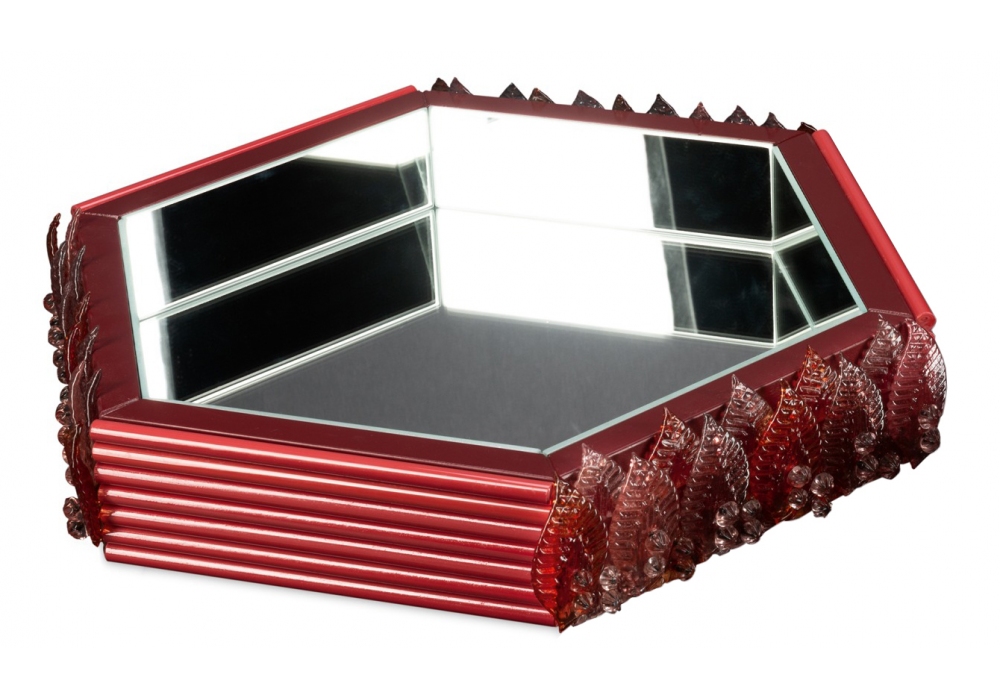 Bamboo diseñada por Zanellato/Bortotto para Visionnaire es una bandeja con estructura en madera pintada de rojo y cristal espejado. Bamboo está disponible en diferentes modelos.
