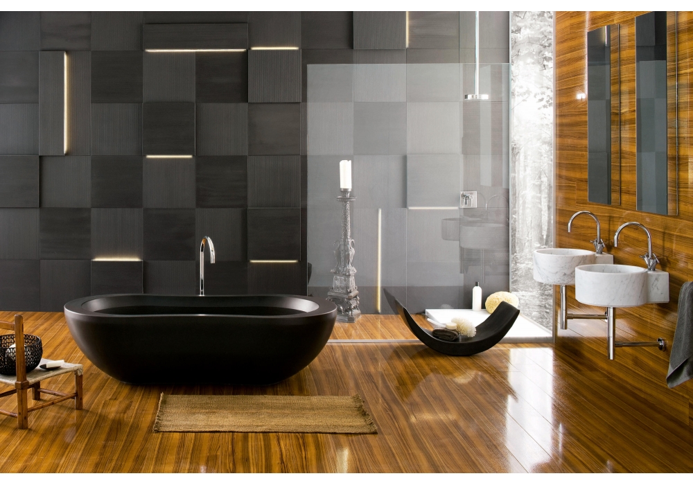 Convivium diseñada por Nespoli & Novara para Neutra es una bañera ovalada tallada en un bloque único de piedra disponible en diferentes acabados.
