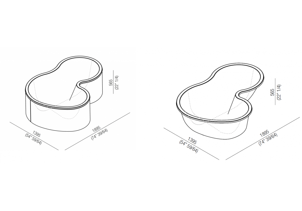 | Dimensiones | 184.8 x 132.3 x H 56.5 cm; 189.5 x 139.5 x H 56.5 cm. |