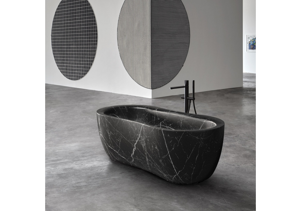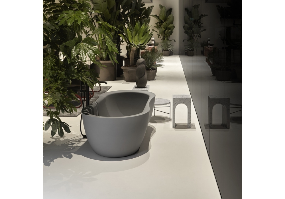 Fida diseñada por Marco Di Paolo para Antonio Lupi es una bañera ovalada en Flumood que se puede pintar exteriormente en todos los colores de nuestro muestrario, en Colormood que se puede pintar interior y exteriormente, o bien en piedra.