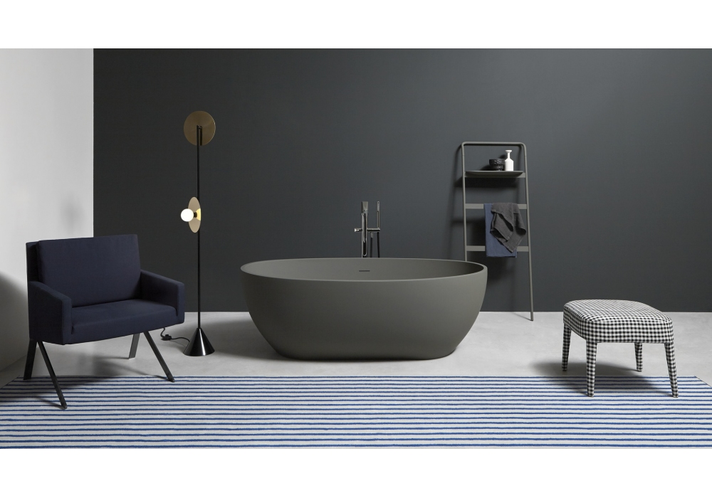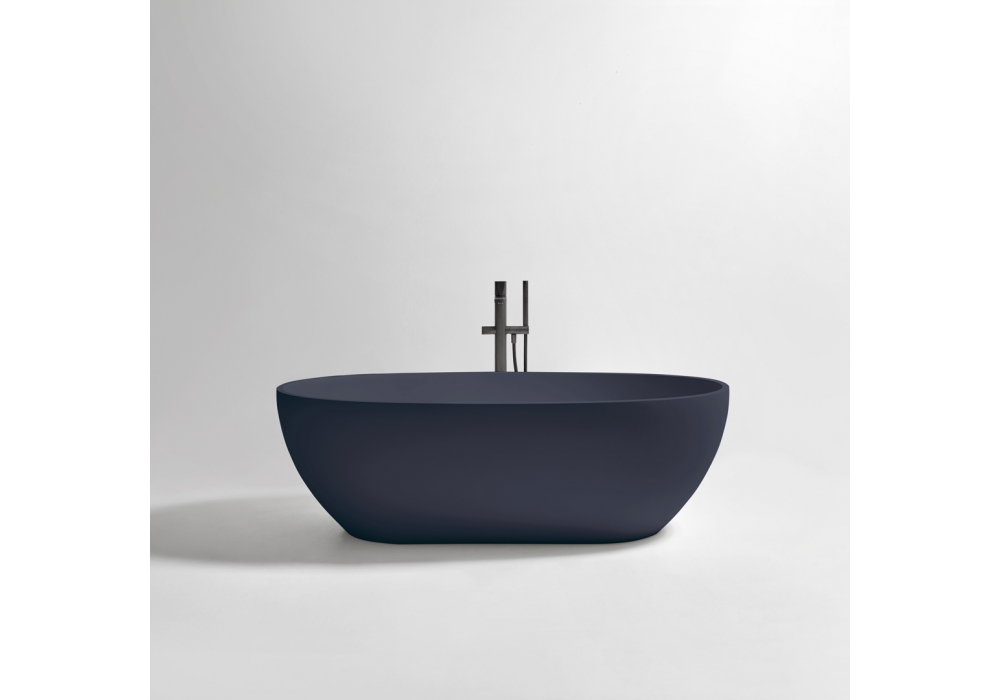 Reflex Colormood diseñada por Antonio Lupi es una bañera ovalada en Flumood, pintable exteriormente, en Colormood pintable interior y exteriormente, completa con desagüe con rebosadero automático invisible, sifón y flexible.