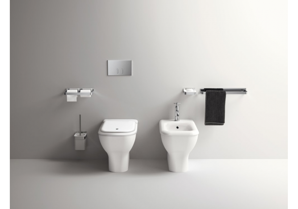 Memory diseñado por Benedini Associati para Agape es un bidé de sobre encimera fabricado en cerámica blanca o bicolor, con orificio para grifería. Dispone de orificio rebosadero con aro de acero inoxidable pulido y kit de fijación.