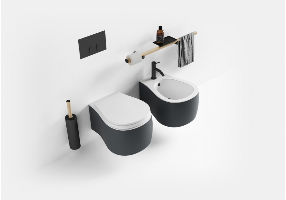 Pear diseñado por Patricia Urquiola para Agape es un bidé suspendido realizado en cerámica blanca o bicolor. Dispone de un orificio para la grifería y otro para el rebosadero con virola de acero inoxidable pulido y kit de fijación. Utilice drenaje.