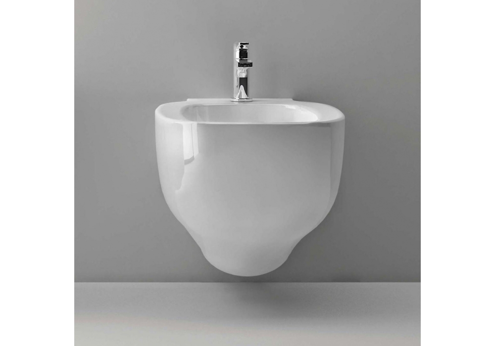 XY diseñado por Piero Lissoni para Boffi es un bidé suspendido con un solo orificio en cerámica blanca.