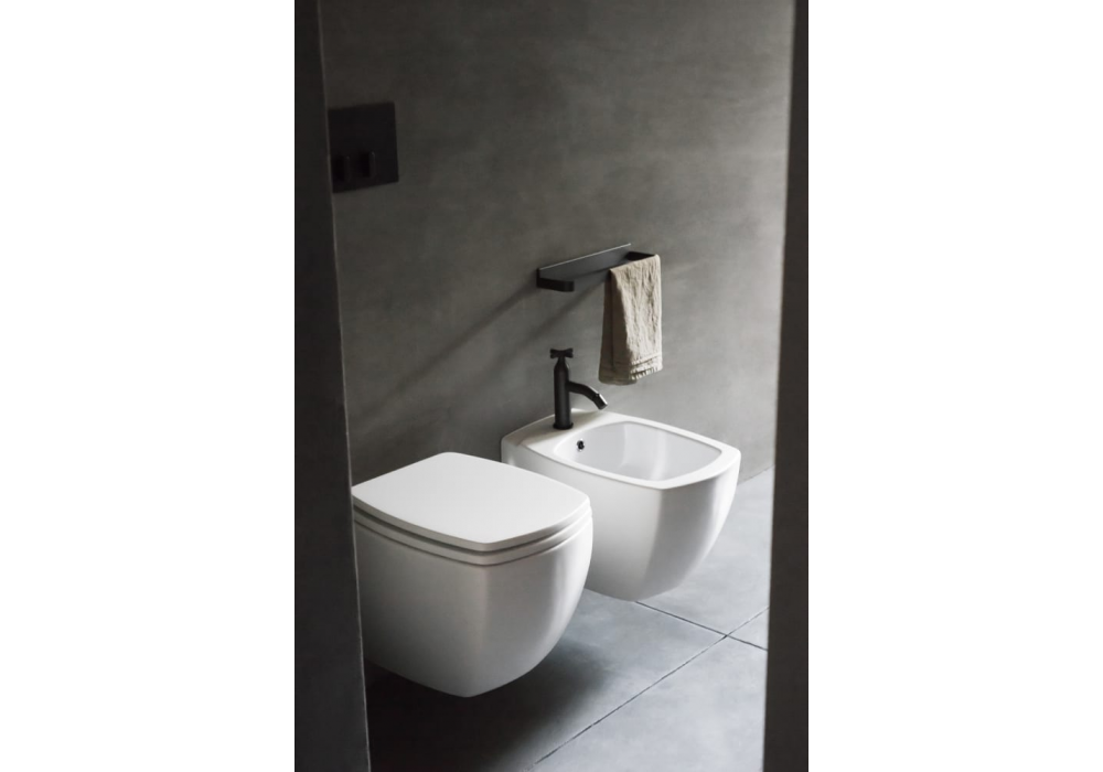 750 diseñado por Benedini Associati para Agape es un bidé suspendido fabricado en cerámica blanca con acabado brillante o mate. Dispone de orificio de rebose con aro de acero inoxidable pulido y kit de fijación. Desagüe de accionamiento manual con orificio de rebose incluido.