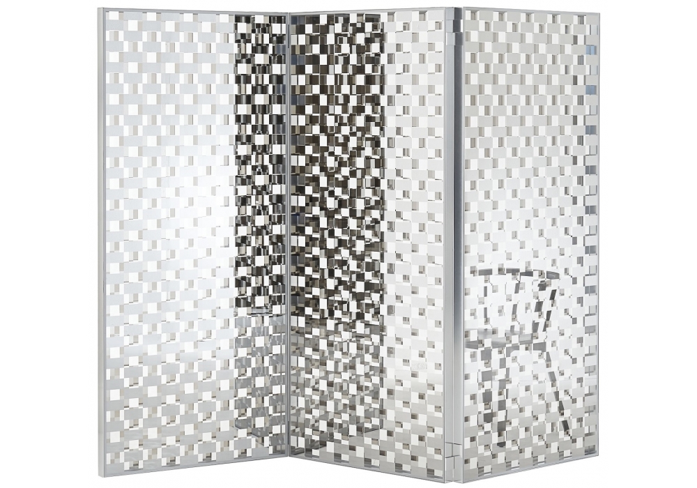 Fragment, diseñado por Nendo para Glas Italia, es un biombo de vidrio templado extralight con una decoración especial de tablero de ajedrez por ambas caras. Dos paneles de vidrio, con tableros de ajedrez orientados perpendicularmente, se aplican a las dos caras de un marco de aluminio pulido y cepillado, separados por una separación de unos centímetros. Esto crea un juego de espejos, revestimientos y transparencias que engaña al observador, disimulando y confundiendo los objetos reflejados con los proyectados, y viceversa. La mampara está compuesta por paneles modulares articulados.