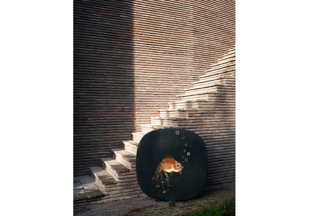 Nebula Poissons diseñado por Pearson Lloyd para Tacchini es un biombo compuesto por dos paneles de MDF, pegados entre sí. Cubierto con un suave acolchado y cubierto con tejidos de Jean Dunand. Está disponible en versión suspendida o de suelo.