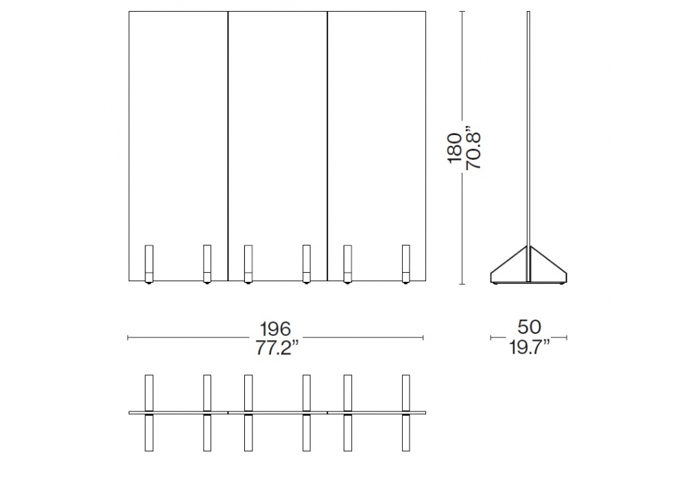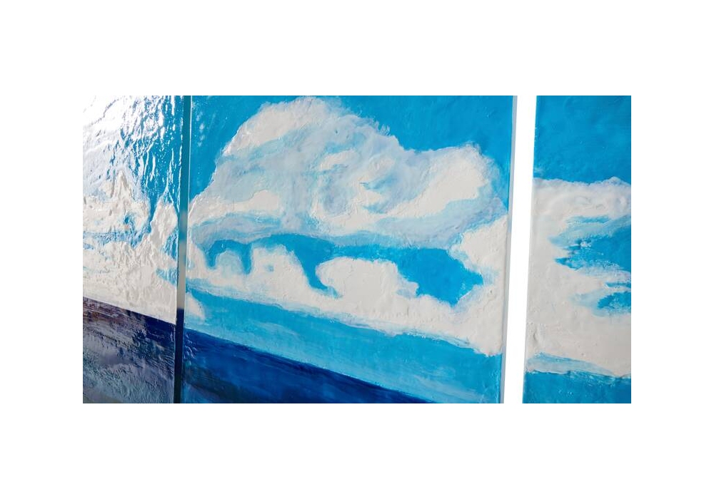Paravento Risacca diseñado por Gaetano Pesce para Cassina es un biombo compuesto por tres paneles fijados sobre seis bases de latón, realizados mediante el vaciado de una resina transparente en un molde de madera con un efecto similar al de la pintura al óleo, capaz de retornar, impresa en el material, cada gesto realizado por el artista, dotando a la obra de esa tridimensionalidad que la hace única. Un altavoz bluetooth se inserta en el pie del panel central.