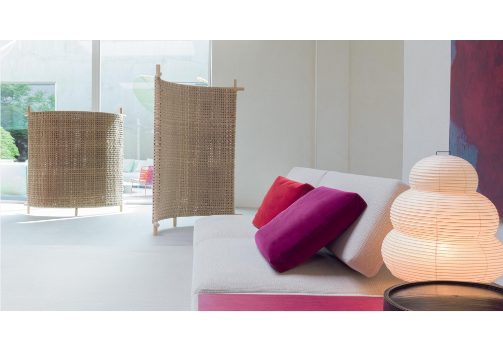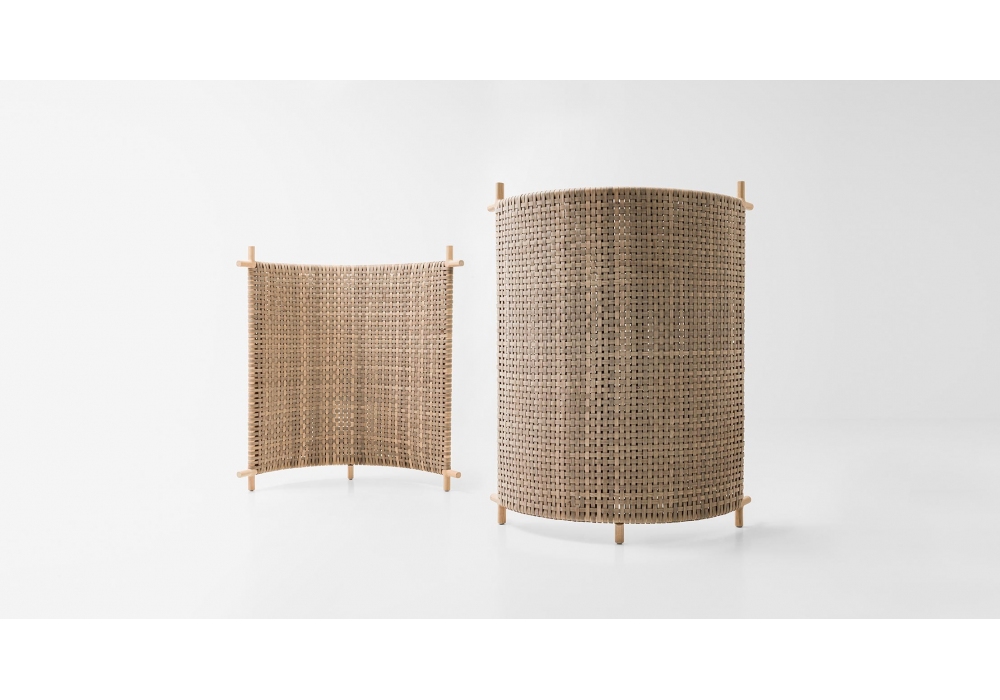 Kiori diseñada por Francesco Rota para Paola Lenti es una mampara curva disponible en 2 tamaños. Estructura de madera maciza de sasafrás completa con puntas de plástico, recubierta a mano con listones de madera de olmo Abonos unidos a un soporte de corcho que los hace elásticos y al mismo tiempo resistentes.