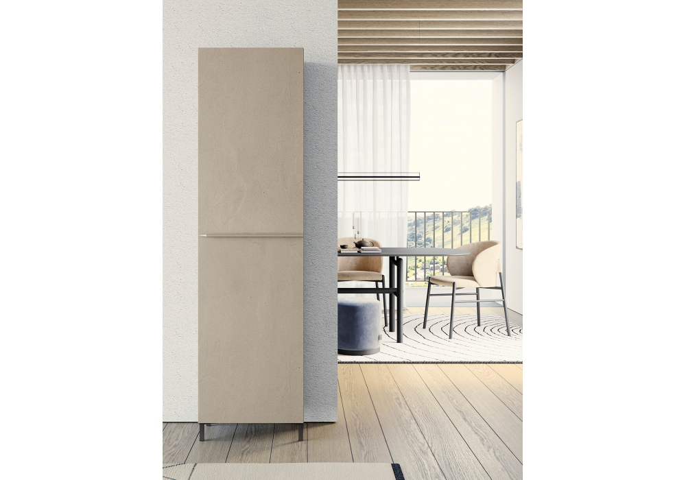 Linear diseñado por Birex es un gabinete para zapatos realizado en arcilla texturizada con tirador horizontal y estantes regulables.