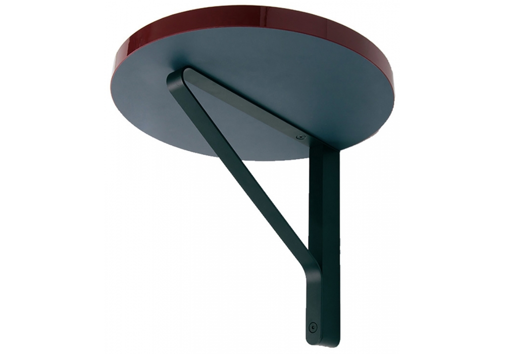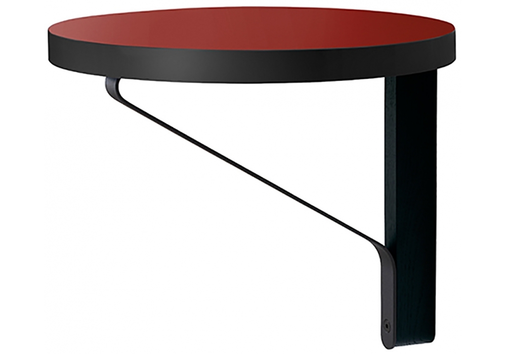 REB 007 Kaari Shelf diseñado por Ronan & Erwan Bouroullec para Artek, es un estante de pared redondo. Cubra con superficie de linóleo (espesor aprox. 24 mm) y borde de ABS. Soporte de pared de roble natural macizo o teñido de negro con un barniz protector.