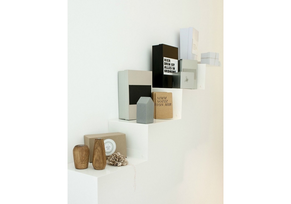 Cloud Steps designed by OK Design is a wall shelf. Place anything from books to shoes and see how they step into neatness. Each set contains 3 steps which can be arranged according to your needs. Also available in set of 12.