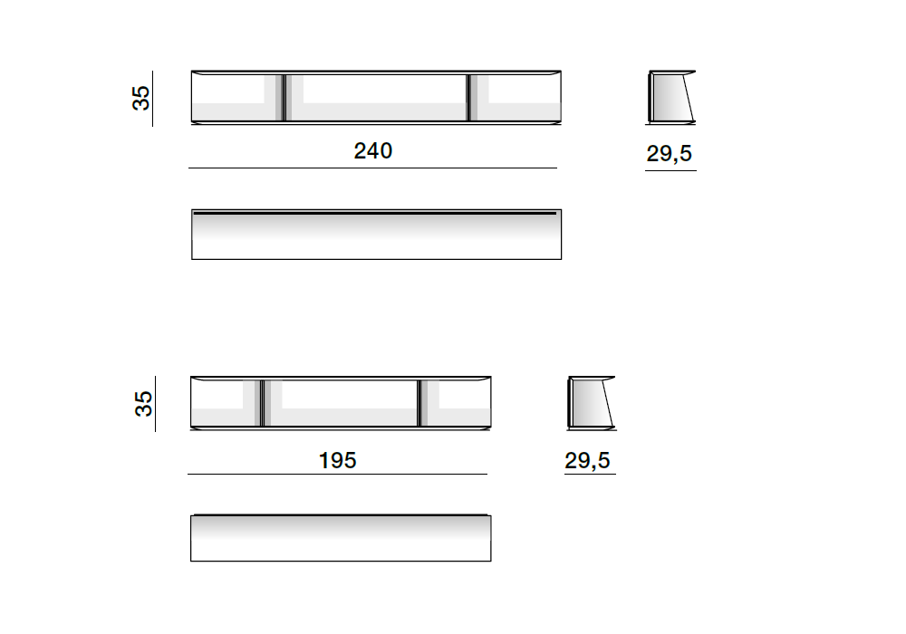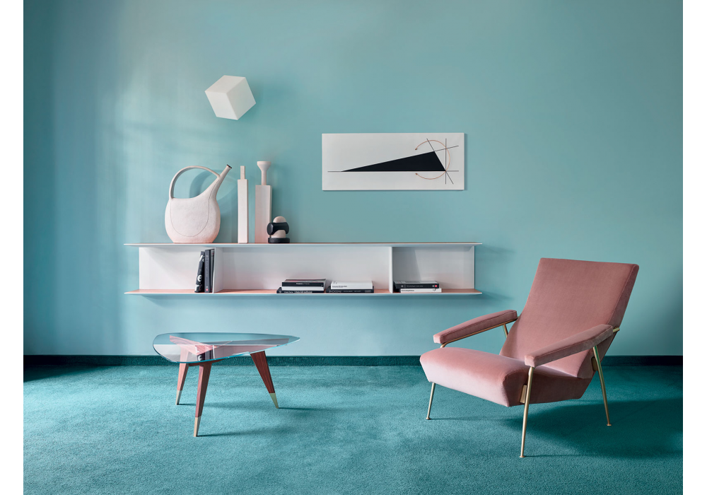 D.355.1 - D.355.2 diseñada por Gio Ponti para Molteni&C es una librería suspendida realizada en madera contrachapada perfilada cubierta de olmo, en parte con acabado transparente natural, en parte pintada a mano en blanco. Disponible en diferentes dimensiones.