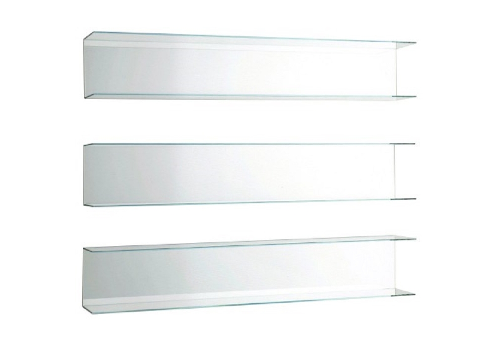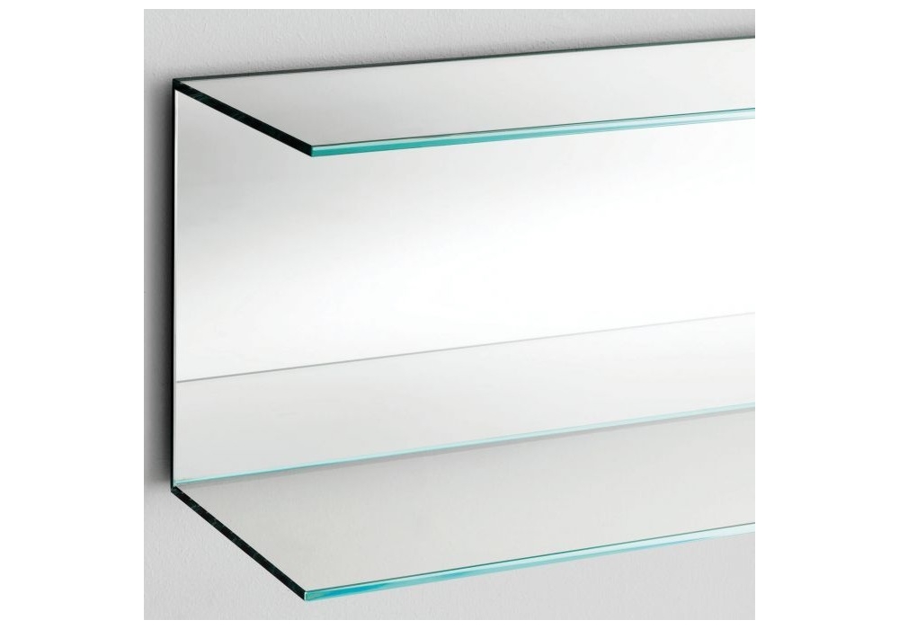 Everywhere diseñada por Studio GL para Glas Italia es una serie de estantes con trasera en espejo y doble balda en cristal transparente extralight de 8 mm templado. Este estante, de forma ligera y pura, además de sujetar y contener, se caracteriza por su función de espejo.