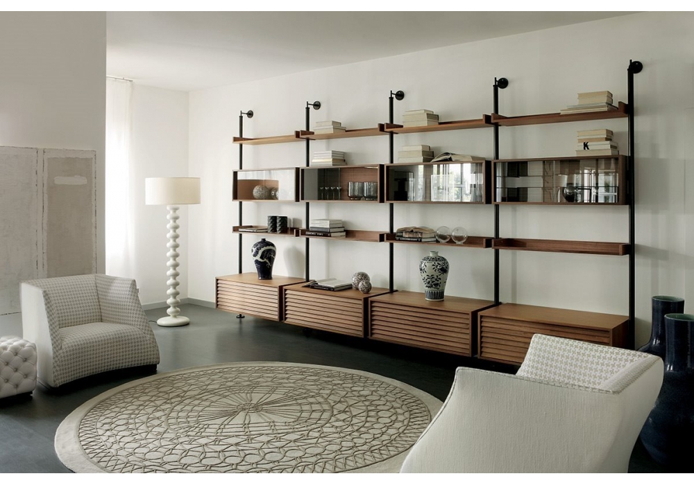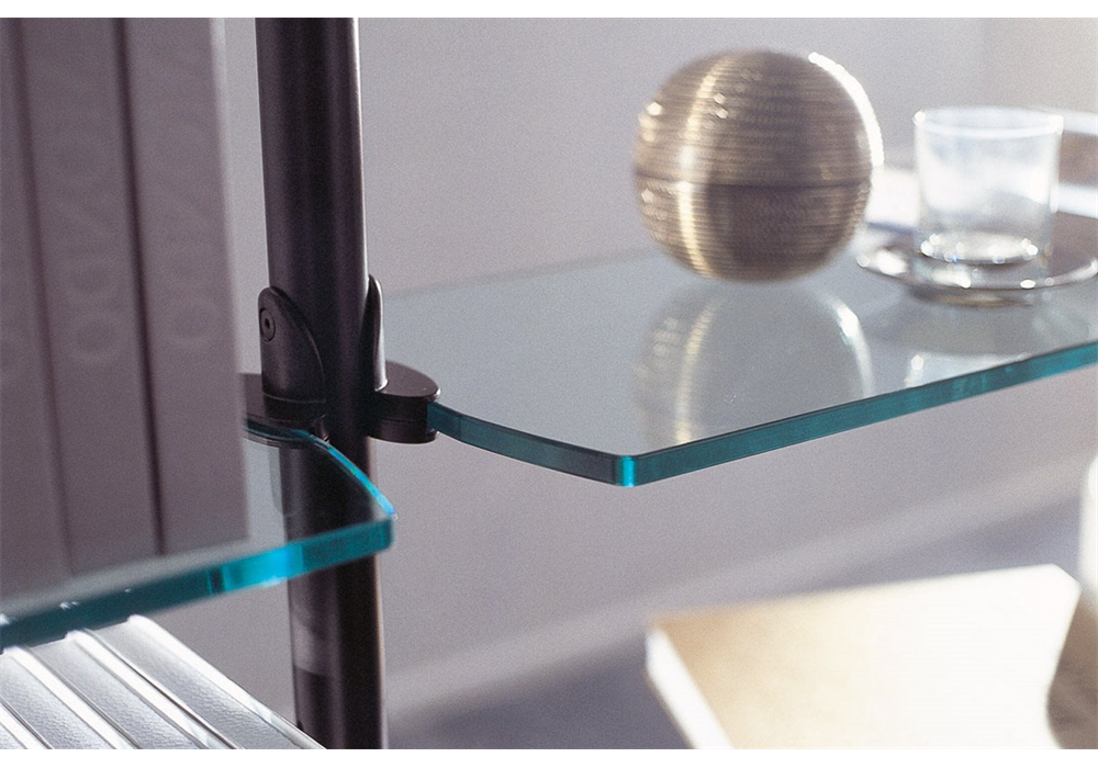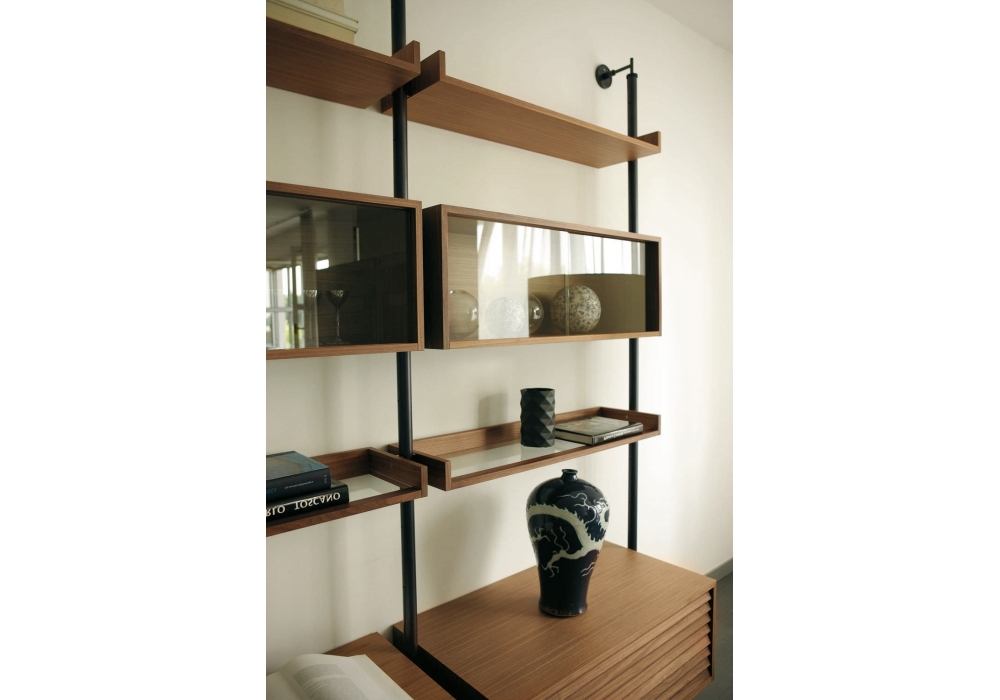 Ubiqua diseñada por T. Colzani para Porada es un sistema de pared modular con estructura en metal, estantes de vidrio o elementos en madera (cajones, paneles). A petición, puede personalizar Ubiqua en diferentes variantes y acabados, en acuerdo con sus preferencias.
