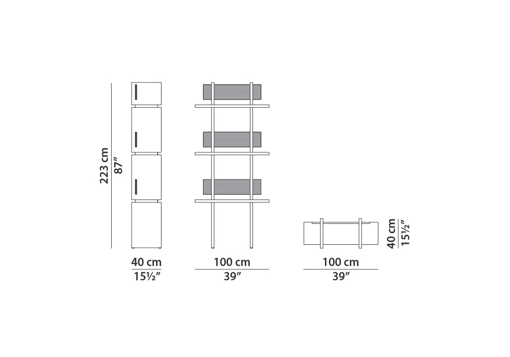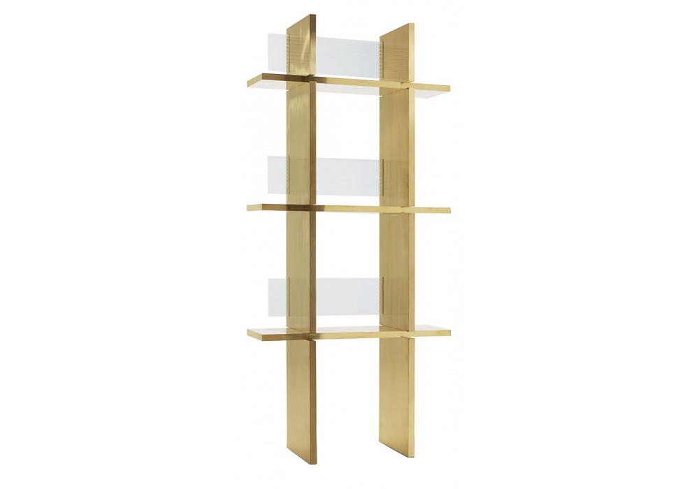 Viceversa diseñada por Draga & Aurel para Baxter es una librería con estructura de aluminio pintado revestida con placas de latón cepillado pulido. Bandas de respaldo en vidrio corrugado extra claro.