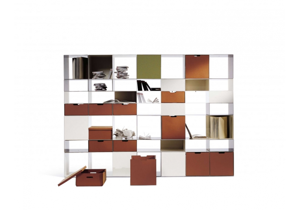 Infinity, diseñado por Antonio Citterio para Flexform, es una librería. Estructura metálica en diferentes acabados. Contenedores de cuero con diferentes acabados. Contacte con nuestro personal para componer su librería personalizada.