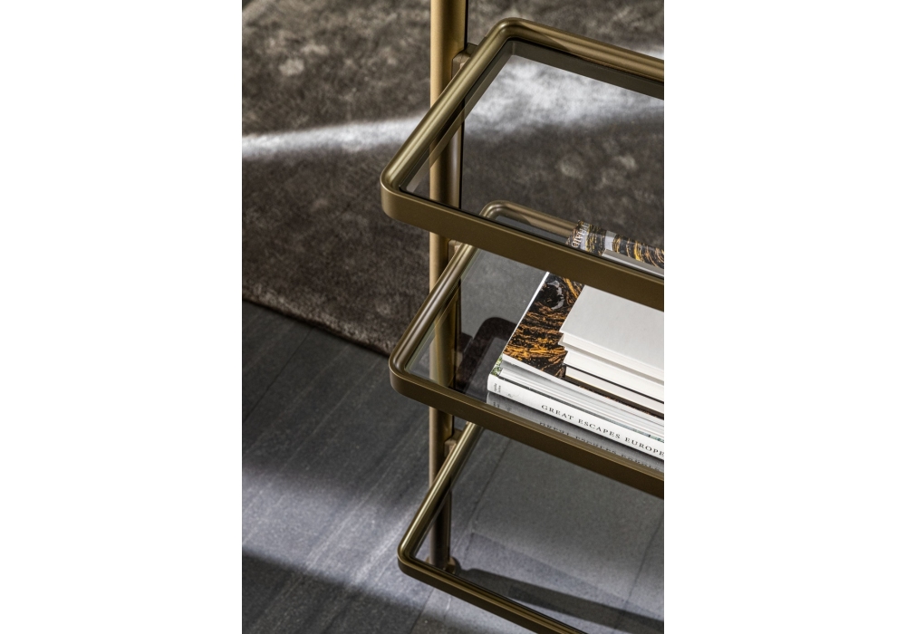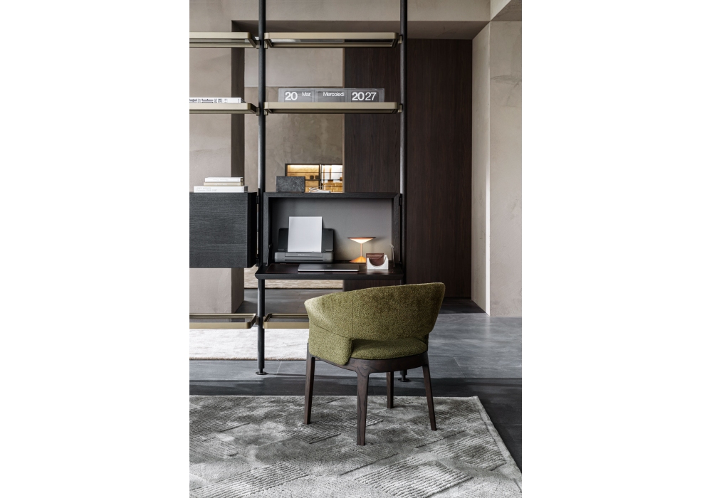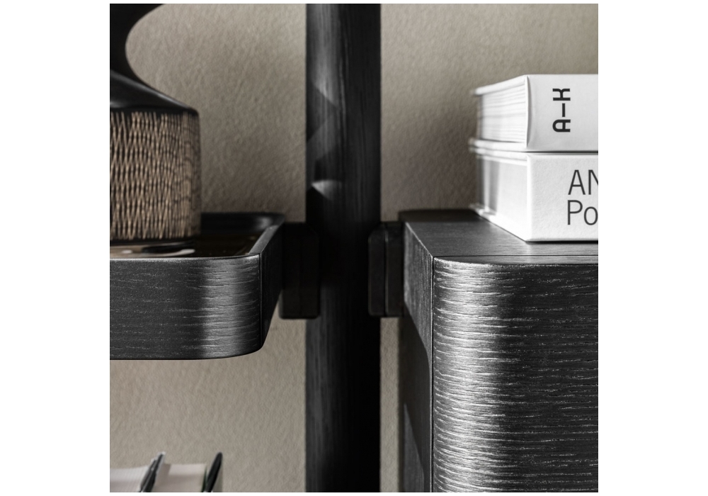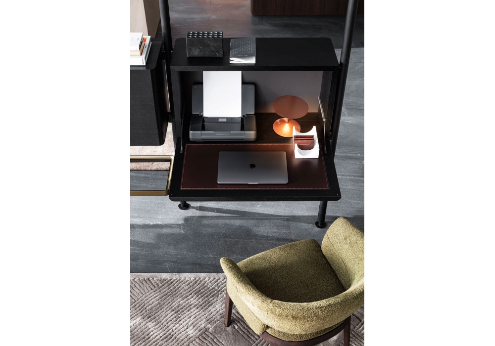 Hector diseñada por Vincent Van Duysen para Molteni&C es una librería modular realizada con estructura de aluminio pintado, inserciones superiores de vidrio transparente extraclaro o ahumado, contenedor con puerta abatible con interior de cuero. Disponible en diferentes acabados y dimensiones.