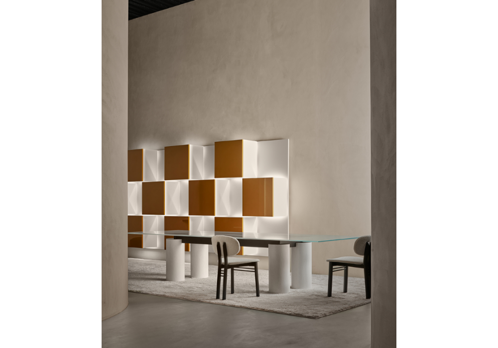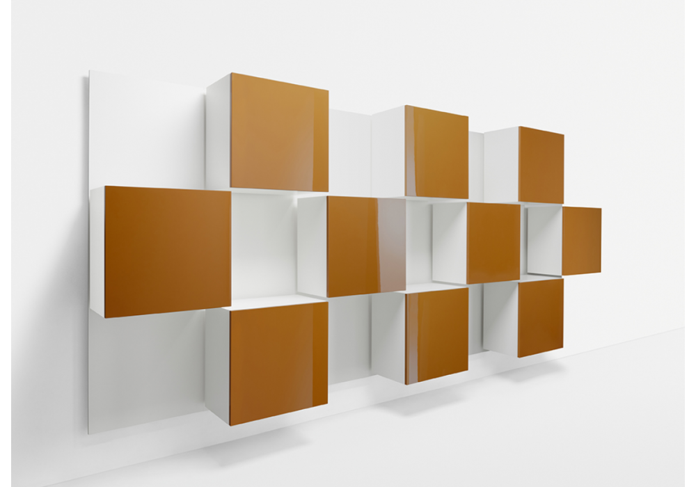 Life diseñado por Roberto Monsani para Acerbis es un sistema de boiserie compuesto por una serie de paneles a los que se añaden armarios cúbicos en diferentes acabados. Unidades base de diferentes longitudes completan el sistema.