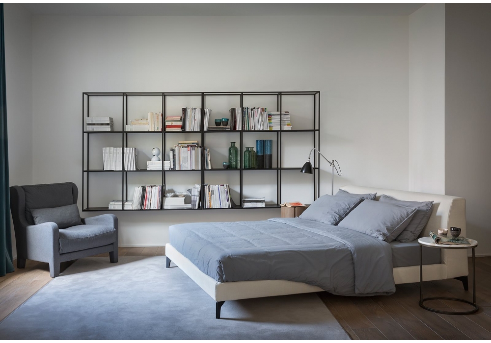 Hardy diseñada por Andrea Parisio para Meridiani es una librería de pared con estructura y estantes en metal. isponible en varias dimensiones y acabados. Soportes para fijación a la pared incluidos