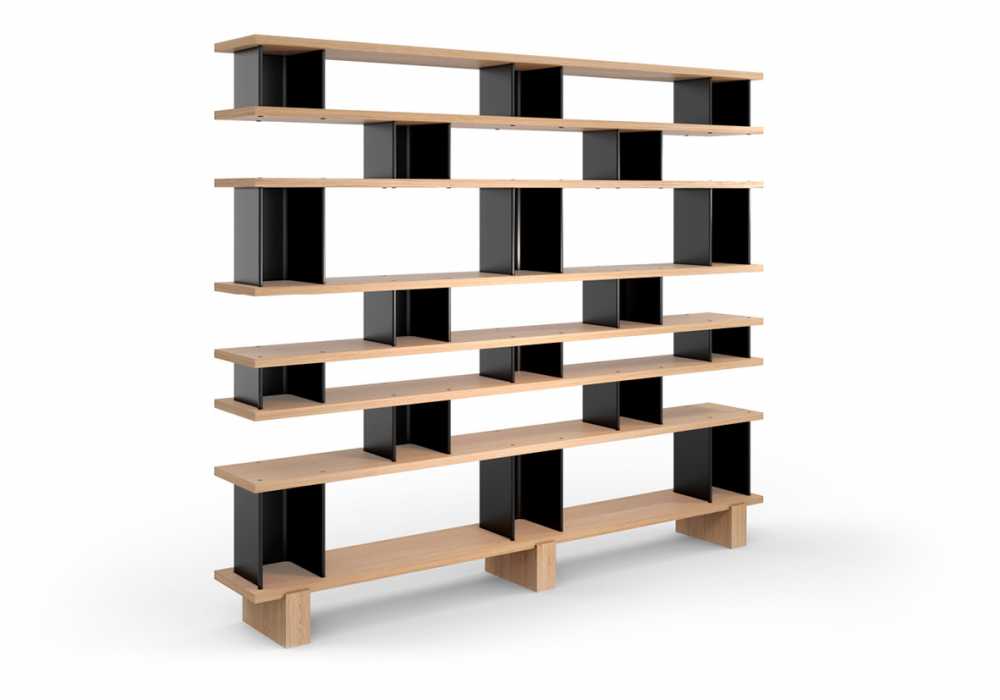 Nuage à Plots diseñada por Charlotte Perriand para Cassina es una librería realizada con estantes de roble teñido de negro o natural y elementos verticales en aluminio anodizado o pintado. Disponible en diferentes acabados y dimensiones.