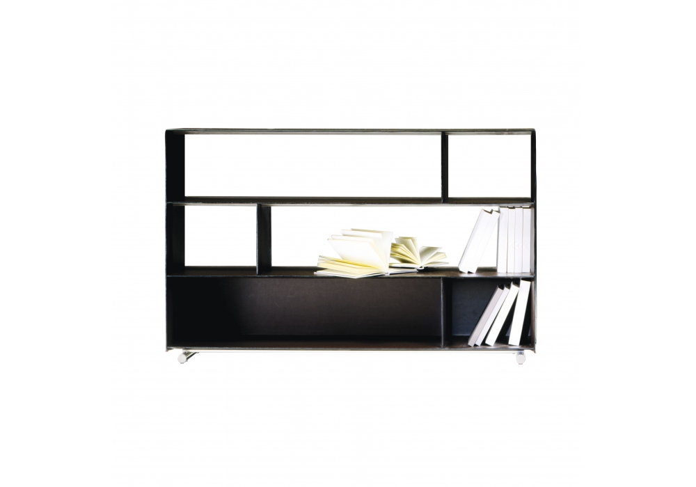 Groundpiece diseñada por Antonio Citterio para Flexform es una librería realizada con estructura metálica revestida en piel y pies metálicos.