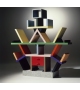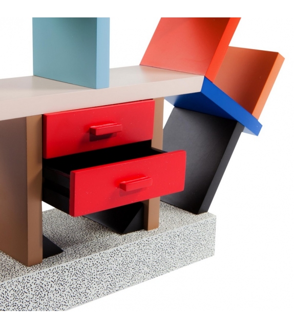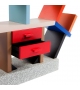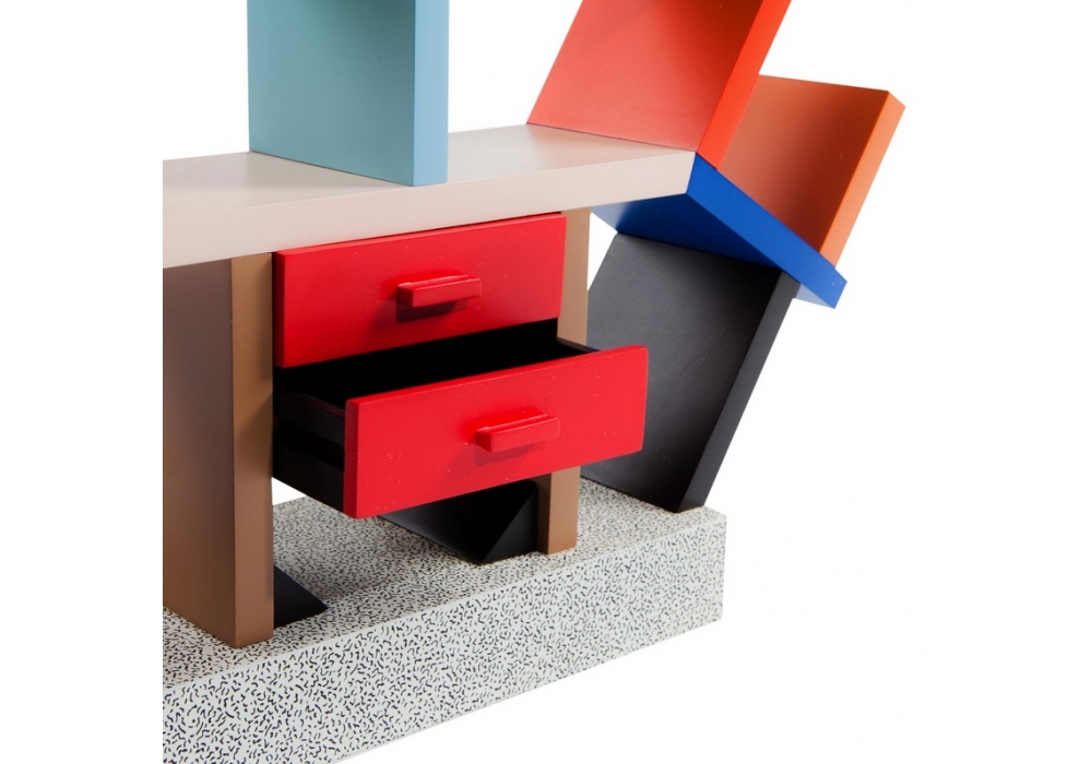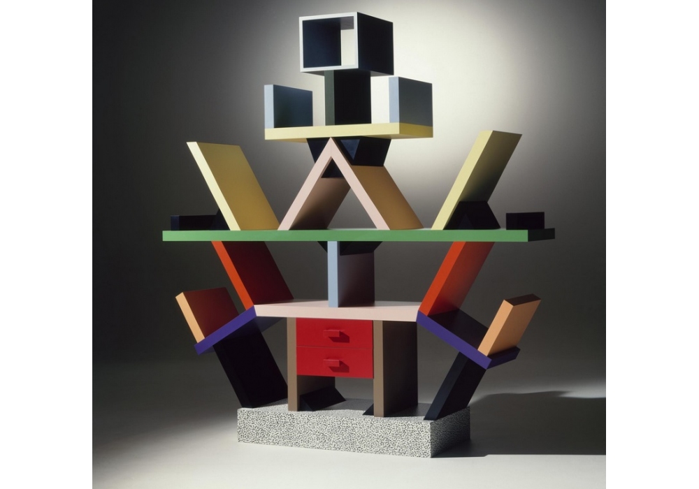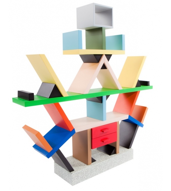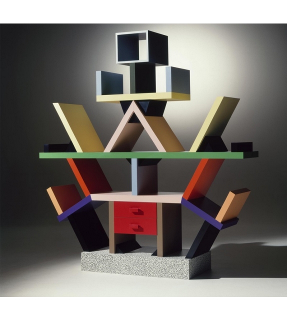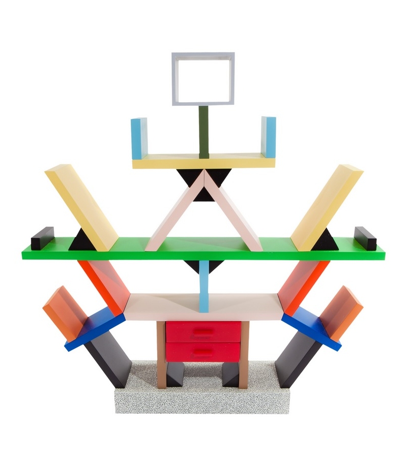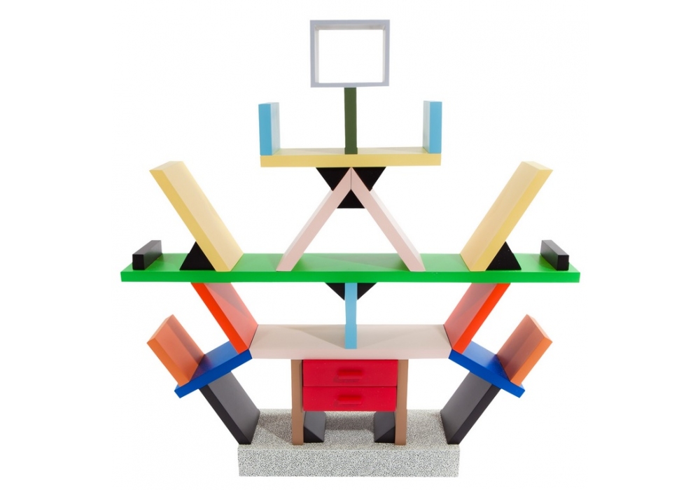 Carlton diseñada por Ettore Sottsass para Memphis Milano es una librería de colores hecha de laminado plástico.