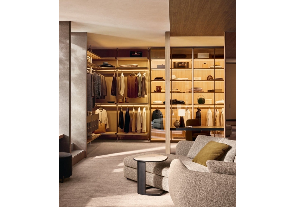 Lexington diseñado por Jean-Marie Massaud e R&D Poliform es un sistema modular que permite varias posibilidades de configuración. Consiste en un característico marco sobre el que se encuentran estantes, cajones y otros elementos. Tiene dos configuraciones disponibles: montado en la pared y de suelo a techo, que también da la opción de diseñar composiciones a dos caras, acabadas tanto en el frente como en la espalda.