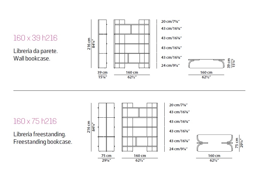 | Dimensiones | 160 x 39 x H 216 cm (De pared); 160 x 75 x H 216 cm (Freestanding). |