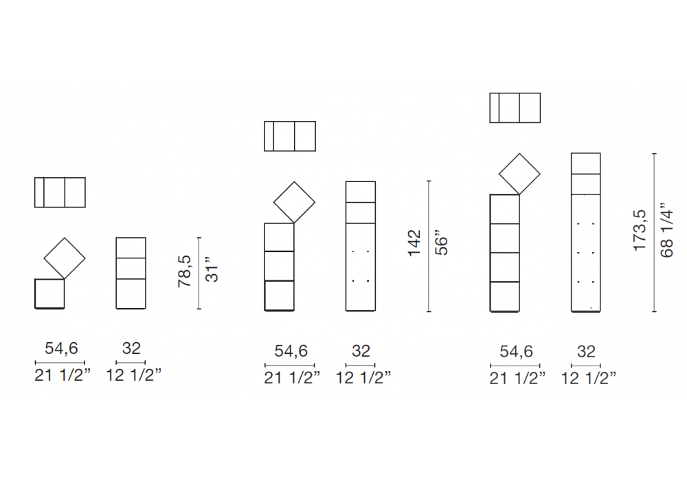 | Dimensiones | 54.6 x 32 x H 78.5 cm; 54.6 x 32 x H 142 cm; 54.6 x 32 x H 173.5 cm |