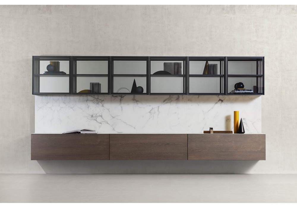 Spazio diseñadas por Pianca es una colección de sistemas modulares. Composiciones de la oficina en el hogar, boiserie y composiciones de contención hechas con diferentes materiales y acabados que satisfacen todas las necesidades de muebles. Los compartimentos completamente gratuitos gracias al nuevo sistema C-Bracket, la personalización extrema de los interiores del cajón, los sistemas de electrificación para paneles, tops y escritorios, son solo algunas de las innumerables personalizaciones diseñadas para resolver todas las necesidades estéticas y técnicas.