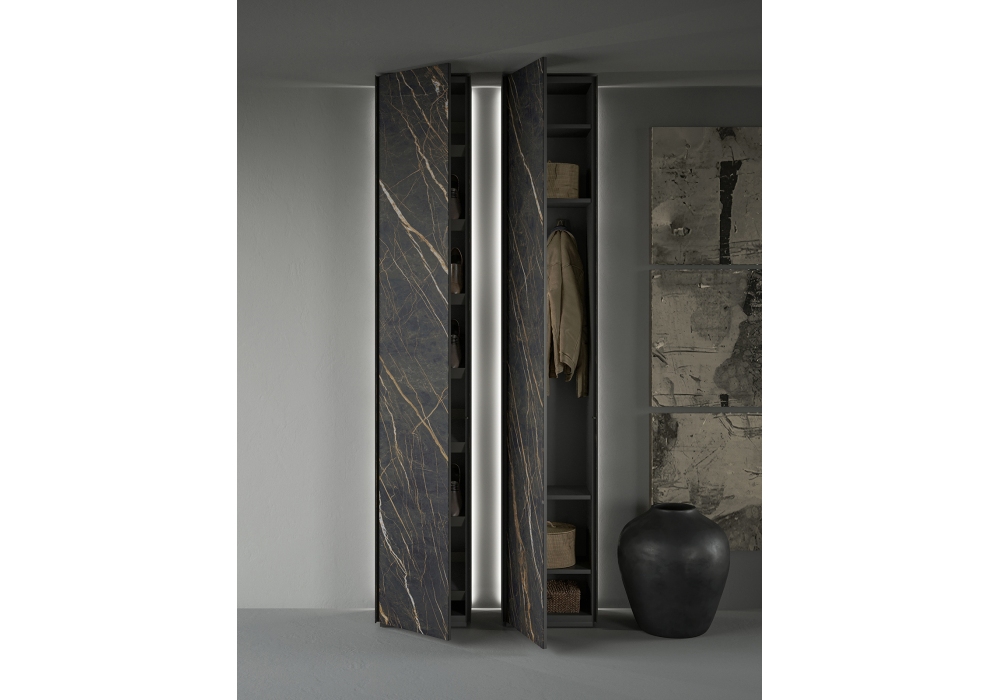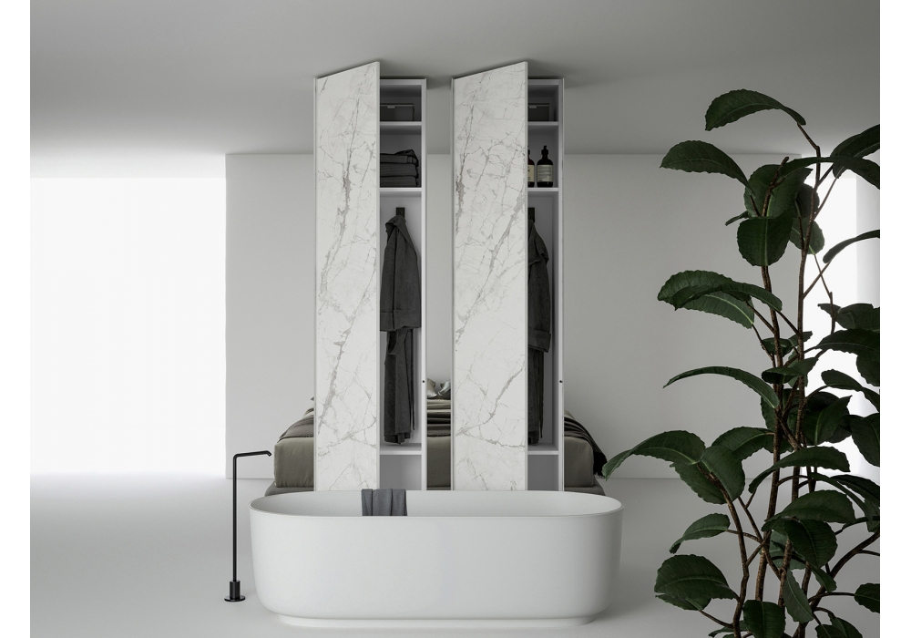 Wallover diseñado por Monica Graffeo para Caccaro es un contenedor que se puede diseñar al milímetro y demuestra una gran versatilidad. De suelo a techo, suspendida en la pared o en el centro de la estancia: se mimetiza con la arquitectura de las estancias que la albergan. Se pueden recubrir por todos lados con un acabado uniforme. Disponible en diferentes tamaños y acabados.