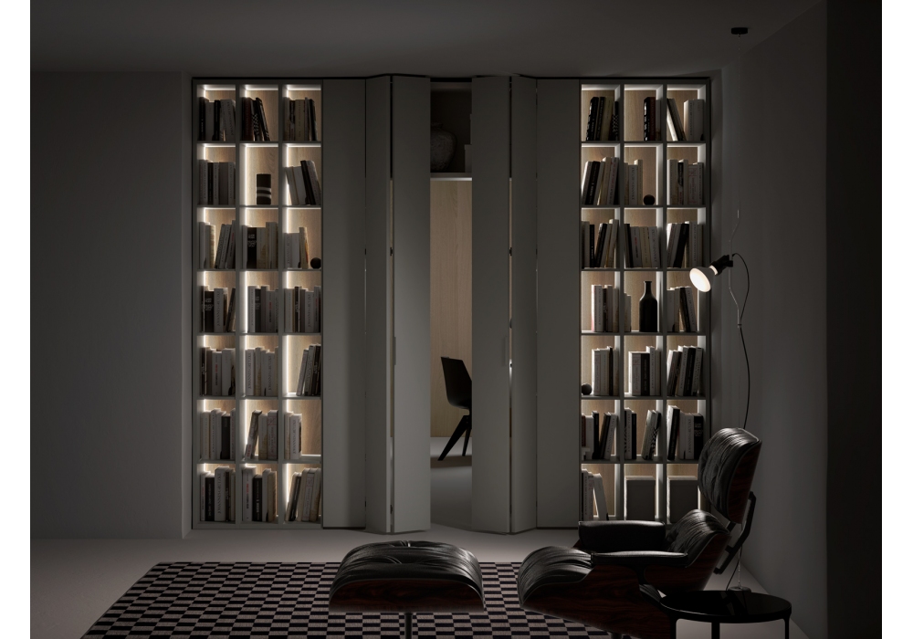 Core Passage Door diseñado por R&D Caccaro para Caccaro es un sistema modular, la solución perfecta para separar espacios sin la ayuda de placas de yeso o reformas. Cerrado retoma la continuidad del muro, abierto se convierte en el punto de unión entre dos ambientes. El sistema de apertura total reduce el desorden de las puertas y se adapta a cualquier tamaño.