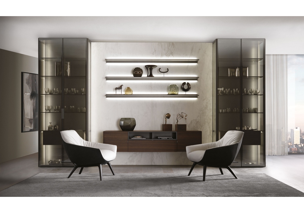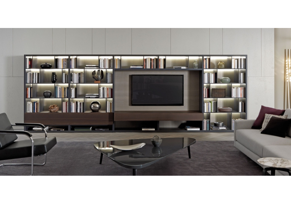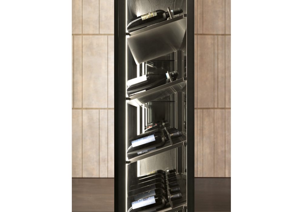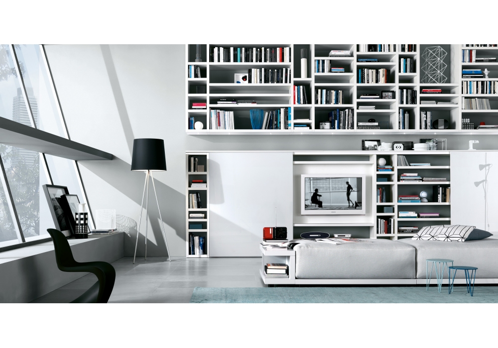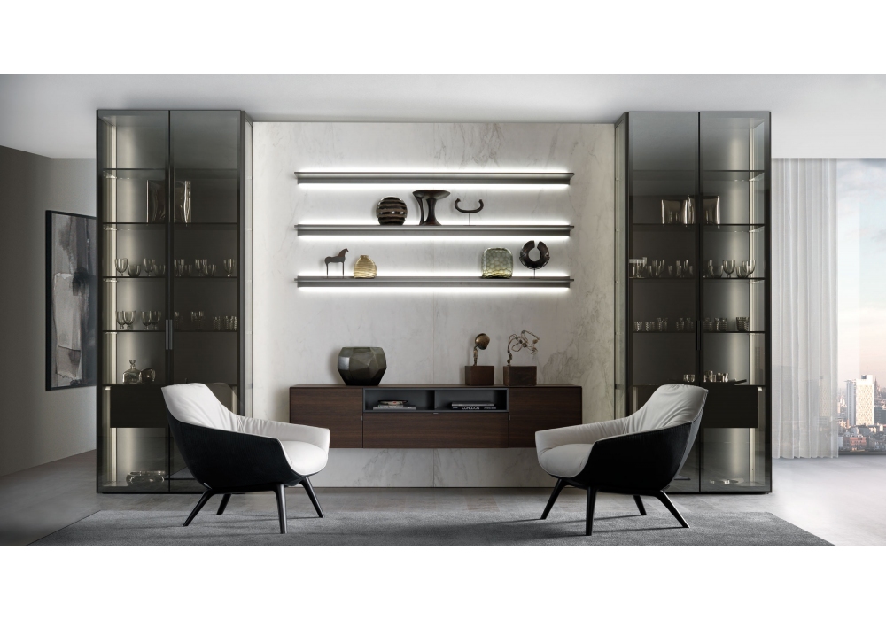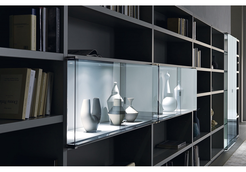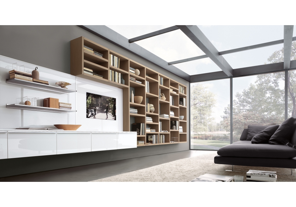 Crossing diseñado por Mauro Lipparini para MisuraEmme es un versátil sistema modular de paneles con los que crear estantes de pared. Totalmente ajustable a lo largo de los ejes tridimensionales, puede soportar hasta 400 kg. El programa ofrece una serie de módulos de diferentes tipos y tamaños, muebles altos abatibles, puertas batientes o correderas y cajones de diferentes medidas. Crossing está disponible en la versión Fusion (con partes en aglomerado visto o lacado) o en la versión Blockboard (tablero de chopo chapado o laminado). Los compartimentos contienen un sistema especial de iluminación Led. Acabados: Lacado Mate, Colores Brillo, Madera Natural, Chapa/Tapicería.