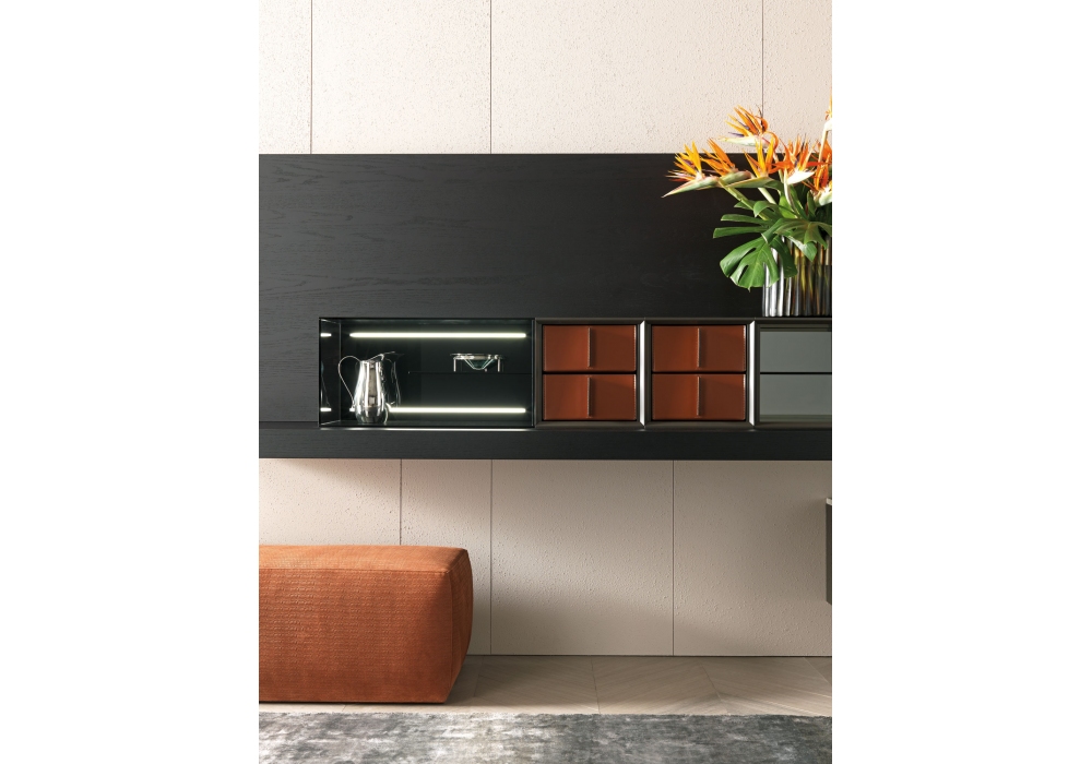 Tao diseñado por Mauro Lipparini para MisuraEmme es un sistema modular abierto caracterizado por la precisión compositiva y la atención meticulosa a los detalles. El resultado es un diseño lineal que destaca por la hábil utilización de diferentes materiales, que se combinan de forma armoniosa y original. La búsqueda de la perfección estética va acompañada de la máxima atención a la funcionalidad, lo que hace que las soluciones Tao se adapten a las necesidades de un público atento y exigente. Las soluciones compositivas de Tao se distinguen por el uso hábil de acabados como laca mate y brillante, madera, melamina, vidrio, ecopiel y tecnomármol.