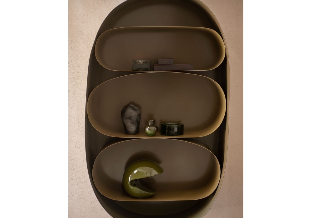 Astral conçue par Faye Toogood pour Tacchini est une bibliothèque réalisée en tôle métallique thermolaquée avec une finition interne mate et une finition externe brillante. Disponible en différentes finitions.