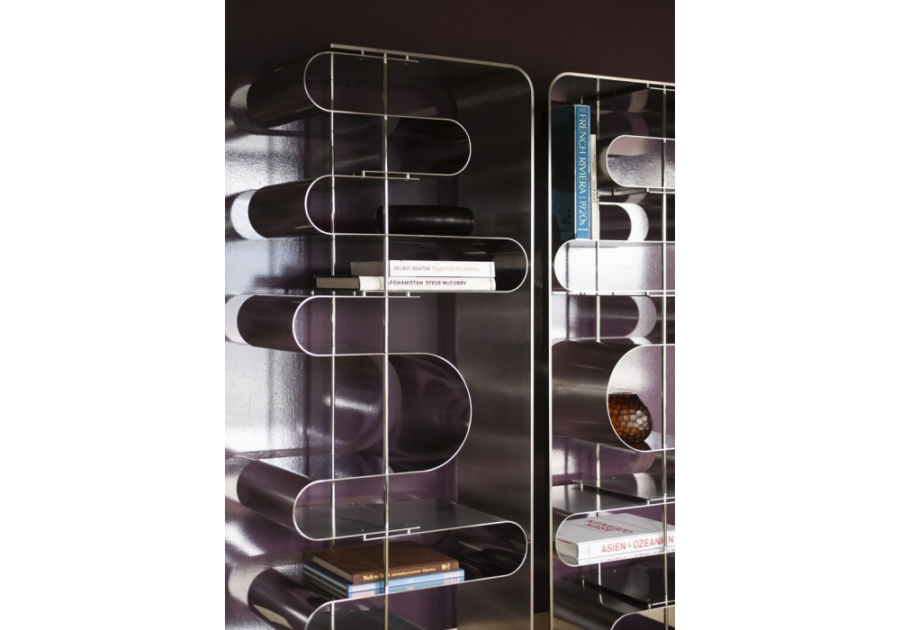 Dune diseñada por Draga & Aurel para Baxter es una librería con estructura y detalles en chapa de acero inoxidable con cara externa pulida y cara interna satinada. El diseño único y original de esta librería, junto con la elección de materiales de alta calidad, hacen de Dune una elección perfecta para aquellos que quieren aportar un toque de lujo y originalidad a su hogar.