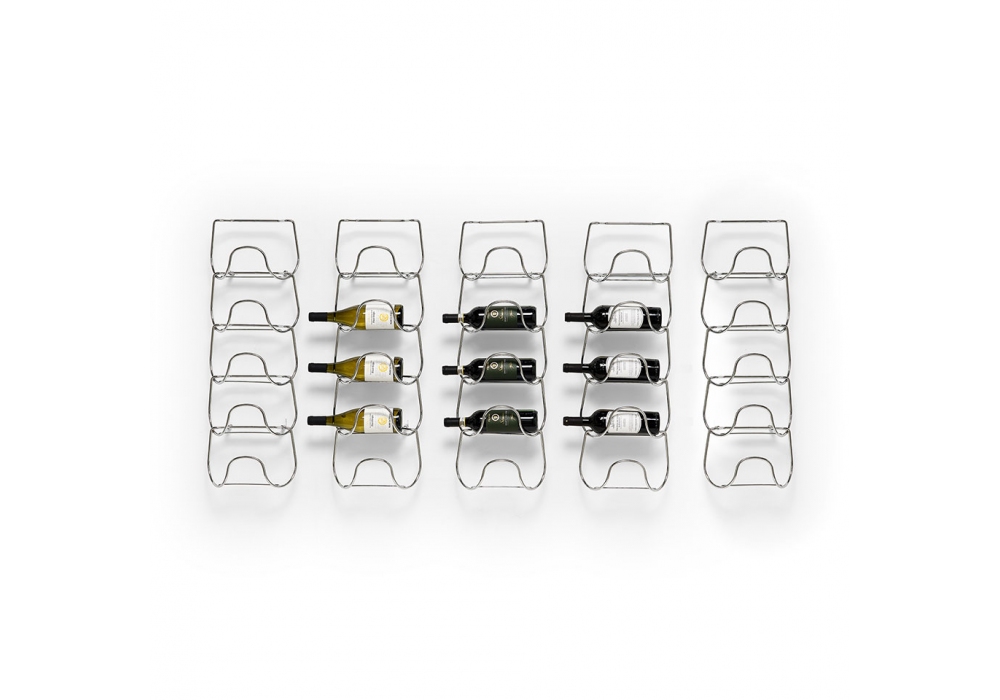 Divina diseñado por Studioventotto para Mogg es un botellero metálico de pared con soportes. Disponible con 3 o 5 elementos en acabado bruñido o cromado.