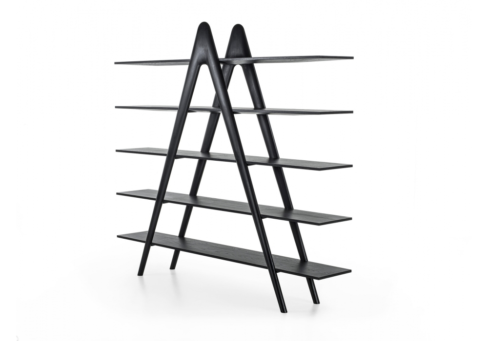 A-Book diseñada por Fabio Di Bartolomei para Riva 1920 es una librería de madera maciza caracterizada por estantes sostenidos por una estructura vertical en forma de A. Disponible en diferentes acabados.
