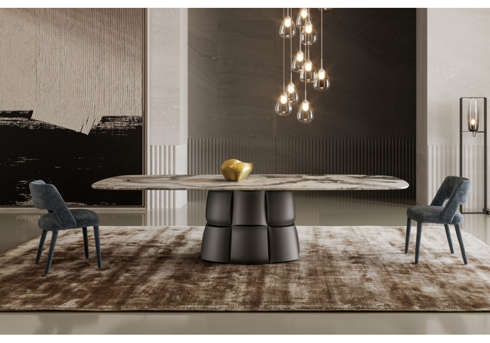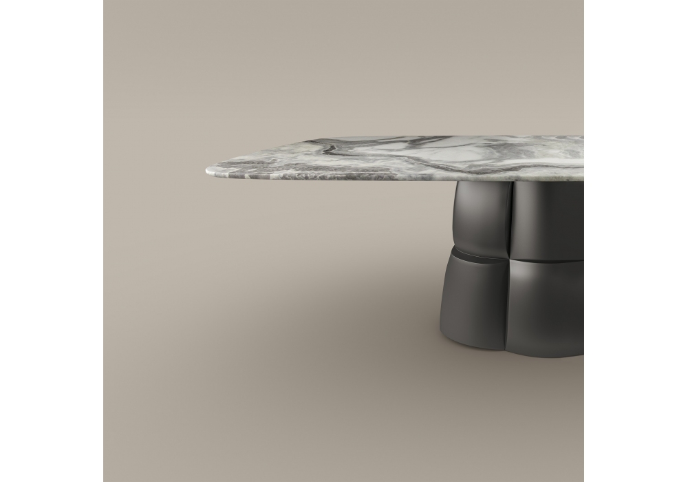 Palazzo diseñada por Matilde Sessolo para Bonaldo es una mesa con tapa de mármol en varios acabados brillantes o mate y base de poliuretano de alta densidad.